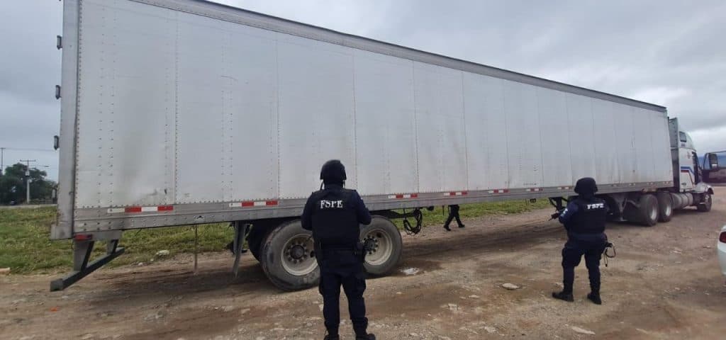 En el lugar identificaron el tractocamión reportado acoplado a un semirremolque, tipo caja seca.