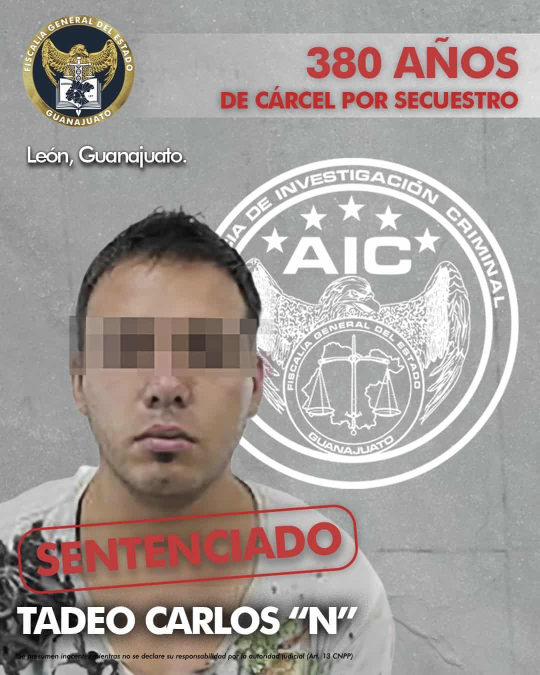 La Fiscalía General del Estado de Guanajuato (FGE) dio a conocer que Tadeo Carlos “N”, fue condenado a 380 años de prisión por el secuestro y asesinato de cuatro mujeres en León.