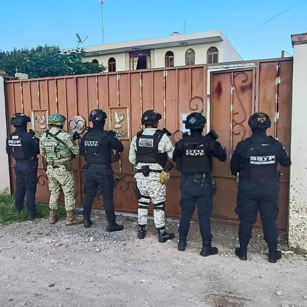 La Secretaría de Seguridad y Paz del Estado de Guanajuato, en coordinación con la Fiscalía General de la República (FGR) y autoridades federales, realizaron un cateo en la comunidad Hacienda de Guadalupe, que derivó en la detención de una persona, así como el aseguramiento de un inmueble, sustancias ilícitas, armas y equipos de comunicación.