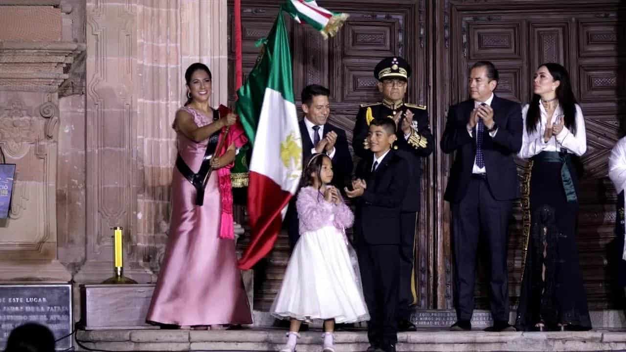 Luego del Grito, la Mandataria Estatal ondeó la Bandera y repicó la campana. seguido por el Himno Nacional; y la Gobernadora entregó la Bandera a la Escolta Militar para su resguardo.