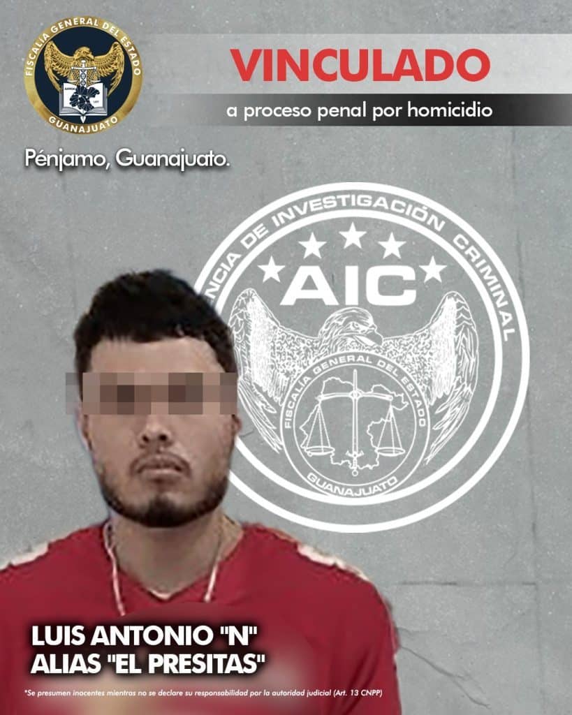 Luis Antonio “N” alias “El Presitas” fue detenido y vinculado a proceso penal, se le acusa de matar a un empresario y ex regidor independiente en el municipio de Pénjamo.
