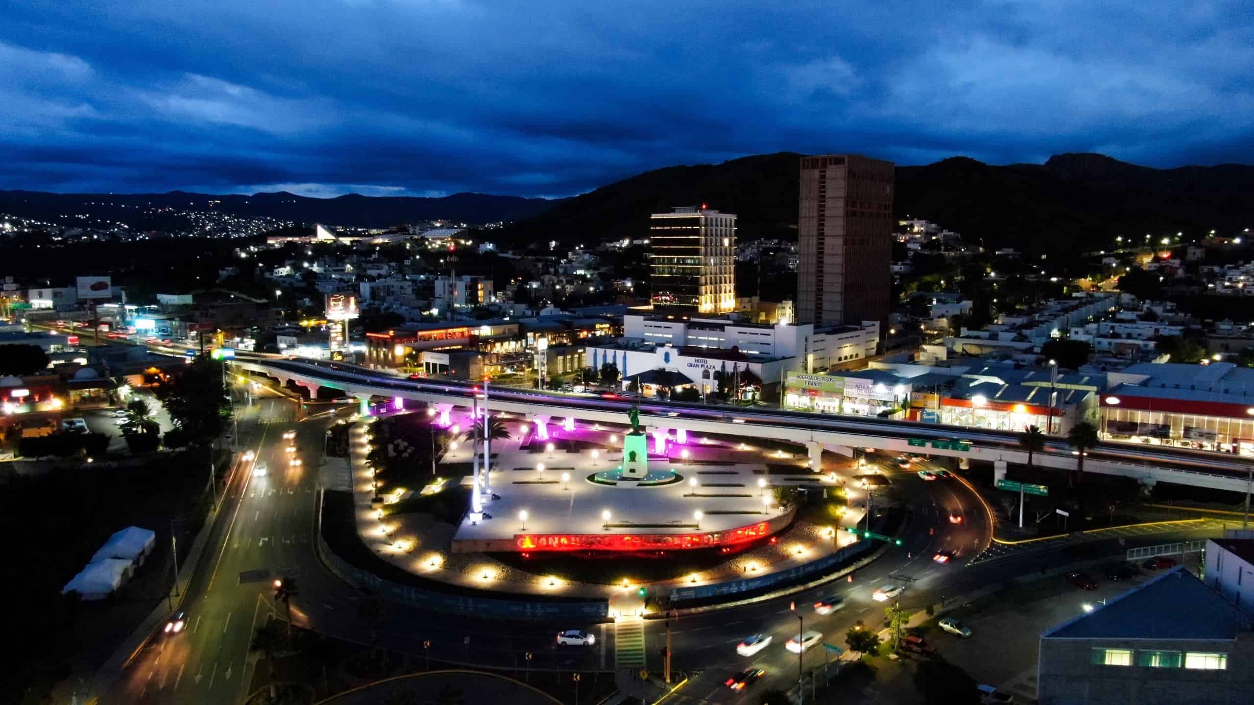 A partir de esta tercera semana de septiembre, la glorieta Santa Fe, en Guanajato Capital luce un vistoso diseño arquitectónico con fuente e iluminación RGB y tiene una plaza cívica que fusiona modernidad y tradición con un enfoque recreativo centrado en las familias guanajuatenses.