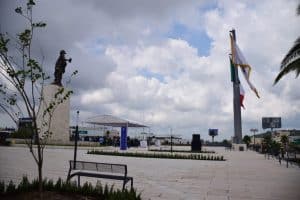 Comentó que también instalaron mobiliario urbano, una fuente seca de borbotones y sistema de riego, ambos incluyen cisterna para proveer el agua; de igual forma renovaron todas las áreas verdes, instalarom alumbrado público y alumbrado escénico con iluminación RGB para destacar la fuente, monumento, muros, astas bandera y las áreas jardinadas.