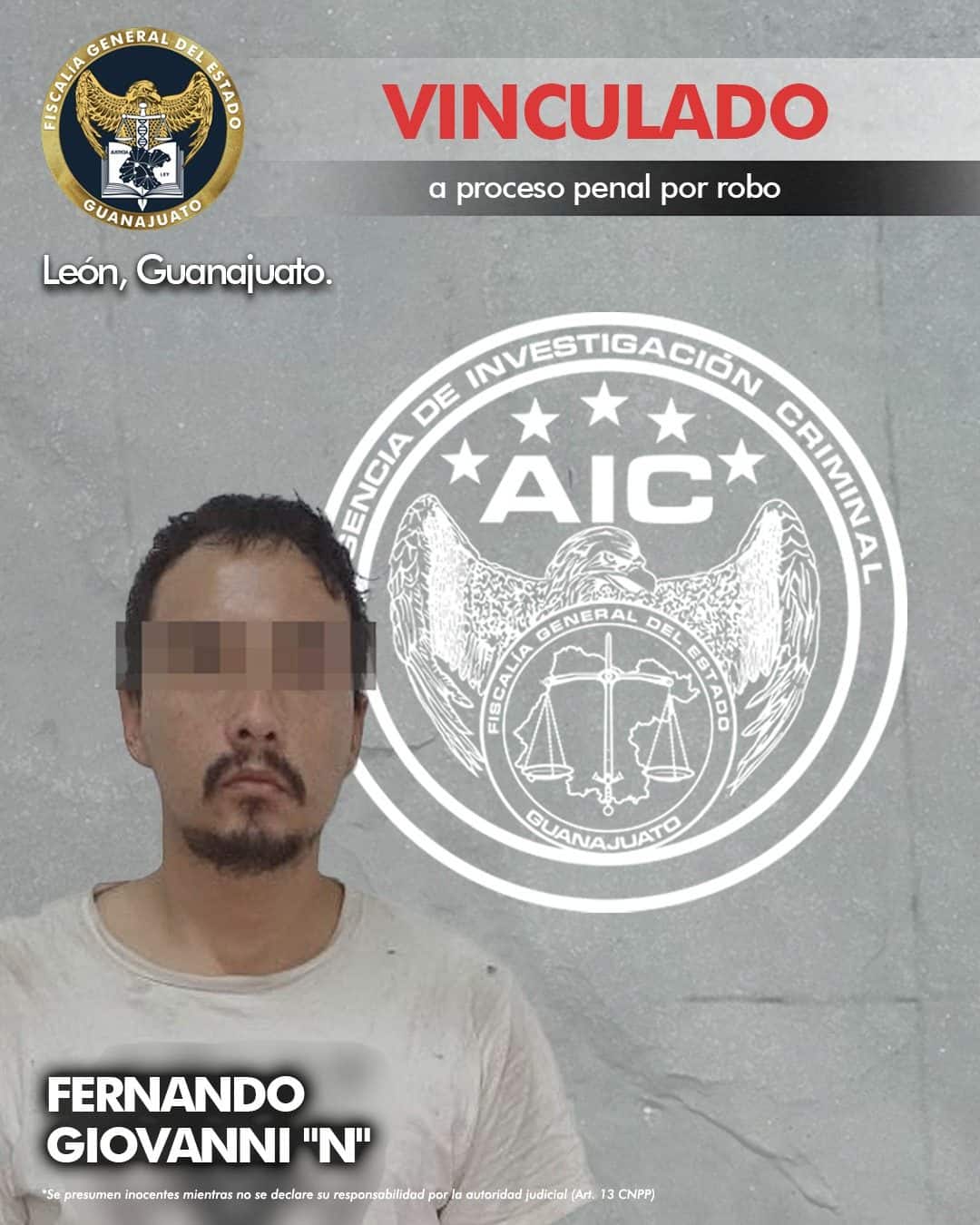 Al ser puesto a disposición de la autoridad ministerial, Fernando Giovanni “N” fue llevado a audiencia de control de detención, donde el Juez validó la acción aprehensiva y tras analizar los datos de prueba presentados por la Fiscalía, lo vinculó a proceso penal por el delito de robo calificado.