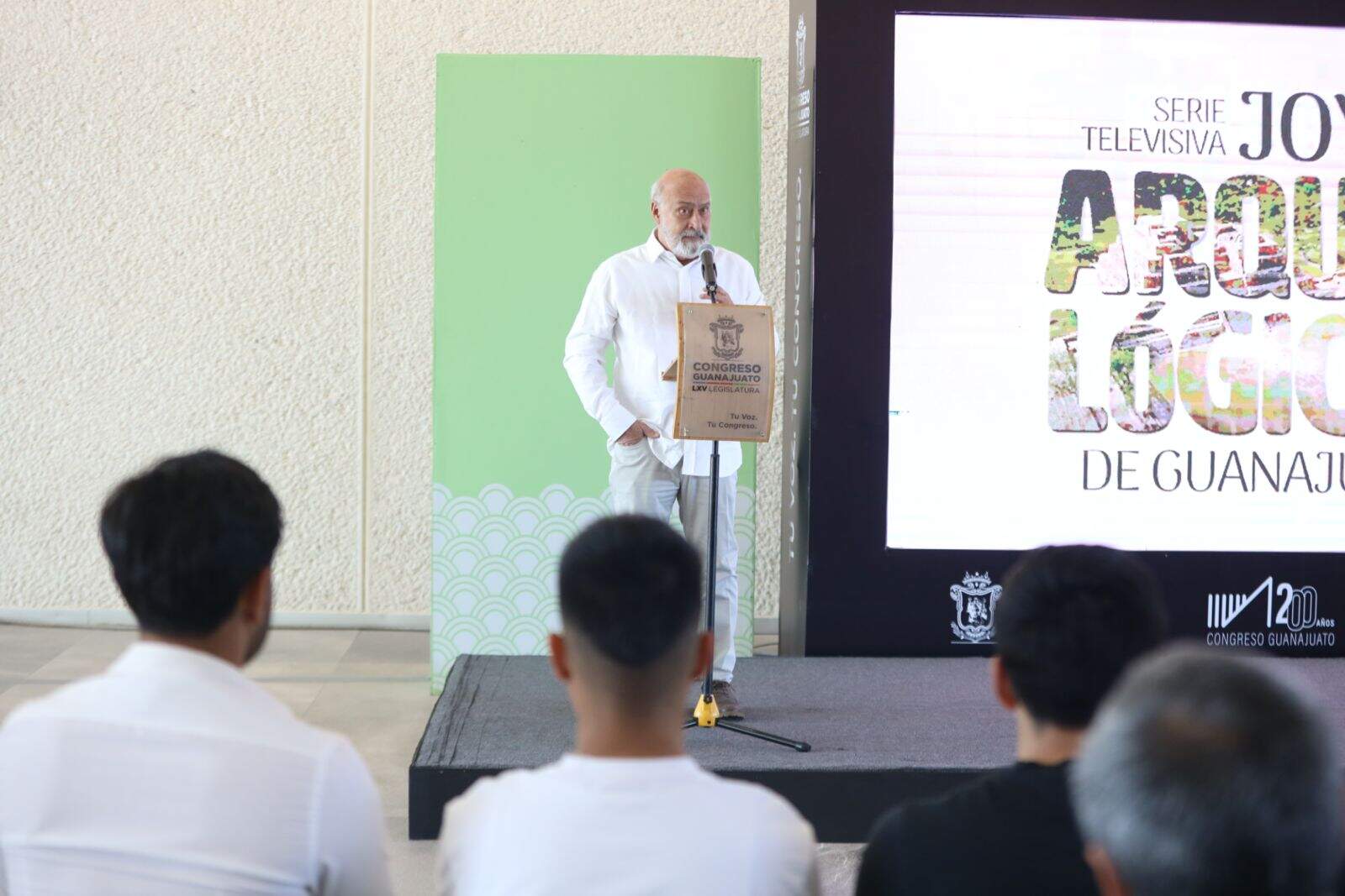 Durante la presentación en el Congreso del Estado, Guillermo Montemayor Gómez, director de “Joyas Arqueológicas de Guanajuato”, destacó la serie que revela descubrimientos de los últimos 30 años en cinco sitios arqueológicos.