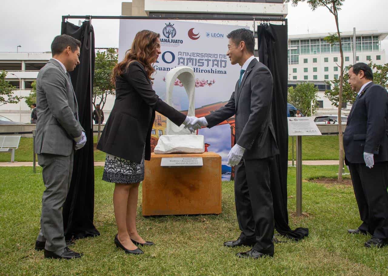 Además, develaron las autoridades una escultura conmemorativa por los 10 años de amistad entre Hiroshima y Guanajuato.