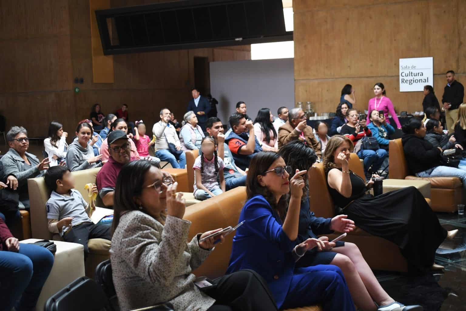 Personas asistiendo a evento cultural en sala regional de Cuéntame en México.
