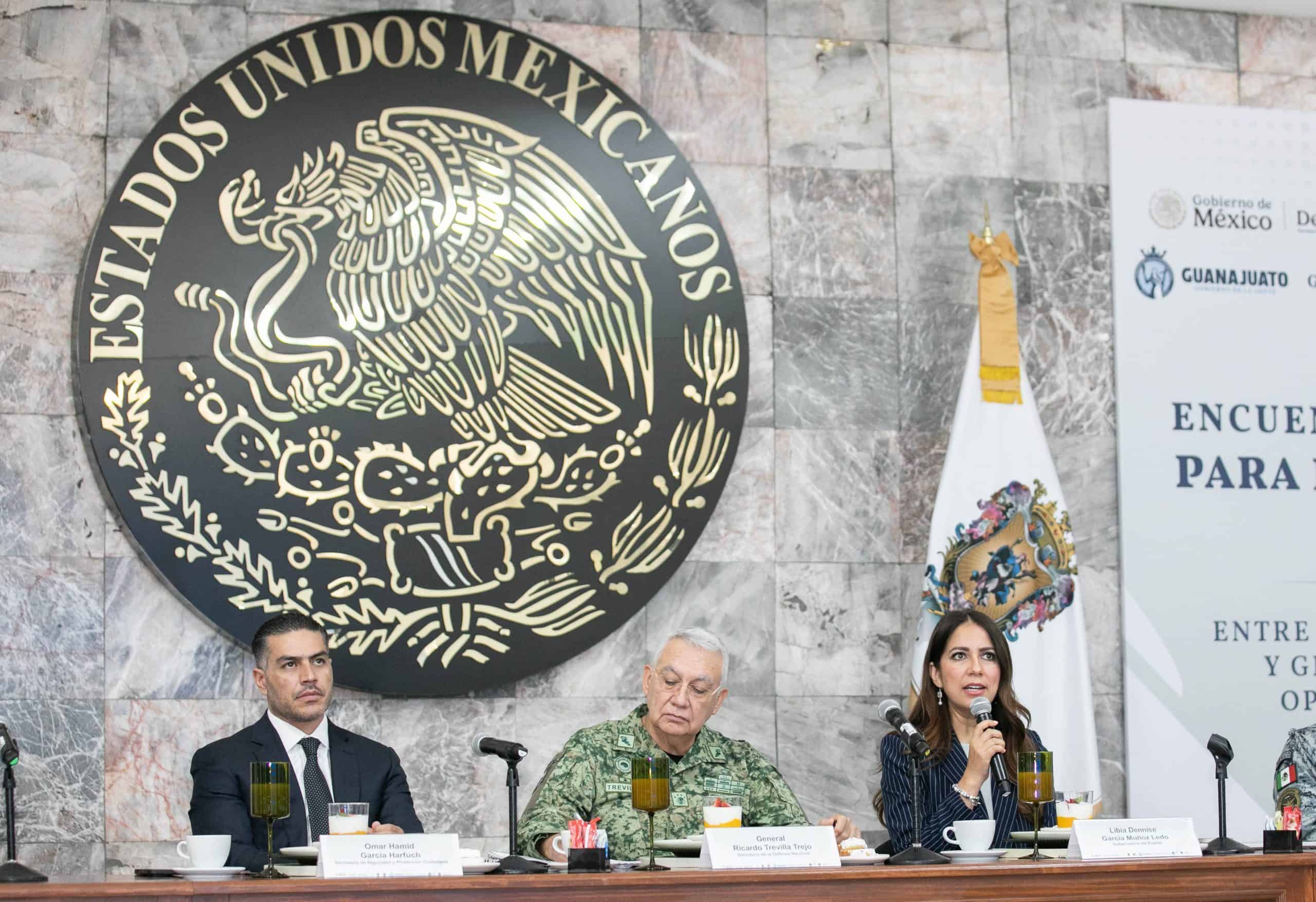 “El día de hoy acordamos no sólo seguir trabajando de manera coordinada, como lo hemos venido haciendo, también acordamos la presencia de dos grupos especiales de trabajo en materia de seguridad, con la finalidad de recuperar la paz en Guanajuato”, declaró Libia Dennise.
