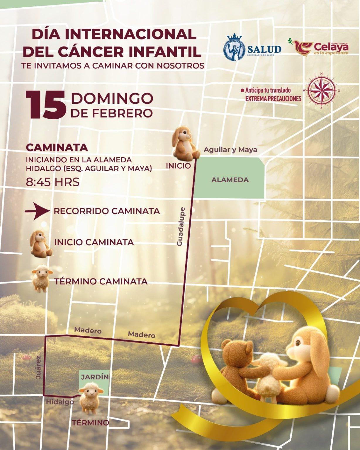 Con el objetivo de hacer visible una enfermedad que muchas veces pasa desapercibida, la Secretaría de Salud de Guanajuato, a través de la Jurisdicción Sanitaria III, invita a la ciudadanía a participar en una caminata y feria de salud con motivo del Día Internacional de la Lucha contra el Cáncer Infantil, este domingo 15 de febrero.