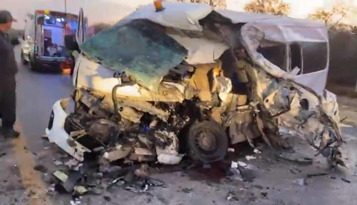 El choque ocurrió cuando la unidad en la que viajaban se encontró de frente con un tráiler que circulaba por el acceso. La fuerza del impacto dejó a varias personas atrapadas y con lesiones de consideración.