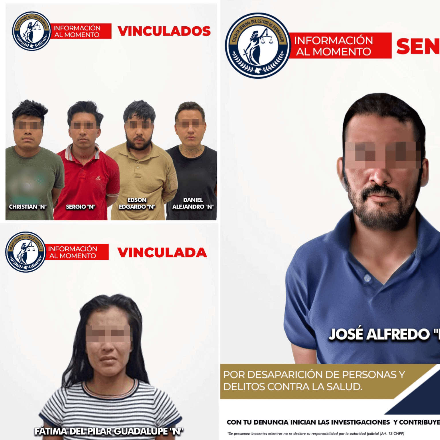 La Fiscalía General del Estado de Guanajuato (FGEG) informó que, en acciones recientes, obtuvo la vinculación a proceso penal de cinco personas presuntamente relacionadas con delitos de desaparición de personas, registrados en los municipios de San José Iturbide y Silao. Además, un implicado fue sentenciado a 15 años de prisión por su participación en un crimen cometido en 2023.
