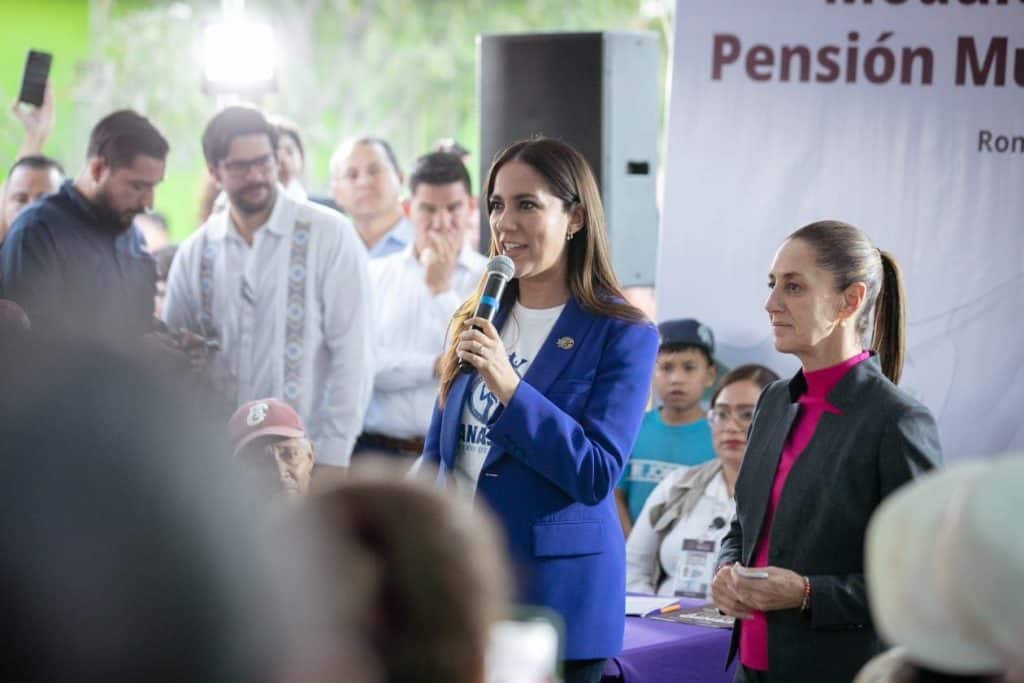 En el municipio de Romita, además de la reunión entre ambas mandatarias y los Gabinetes Federal y Estatal, se llevó a cabo la visita al Módulo de Registro de Pensión Mujeres Bienestar.