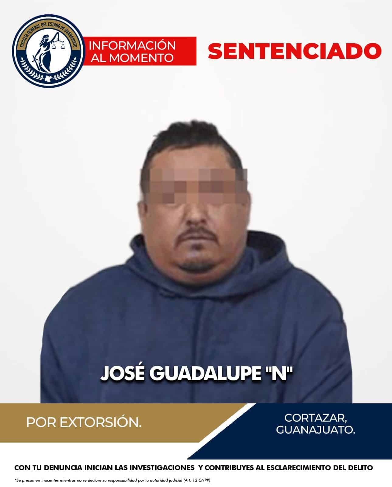 José Guadalupe “N” fue sentenciado por el delito de extorsión agravada, cometido en el municipio de Cortazar.