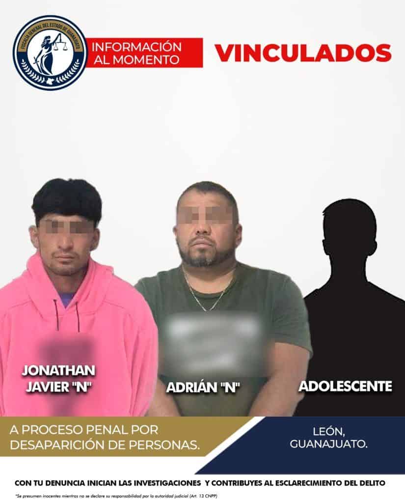 Adrián “N”, Jonathan Javier “N” y un adolescente en la ciudad de León, de 40, 23 y 17 años de edad, fueron vinculados a proceso penal por el delito de desaparición de personas.