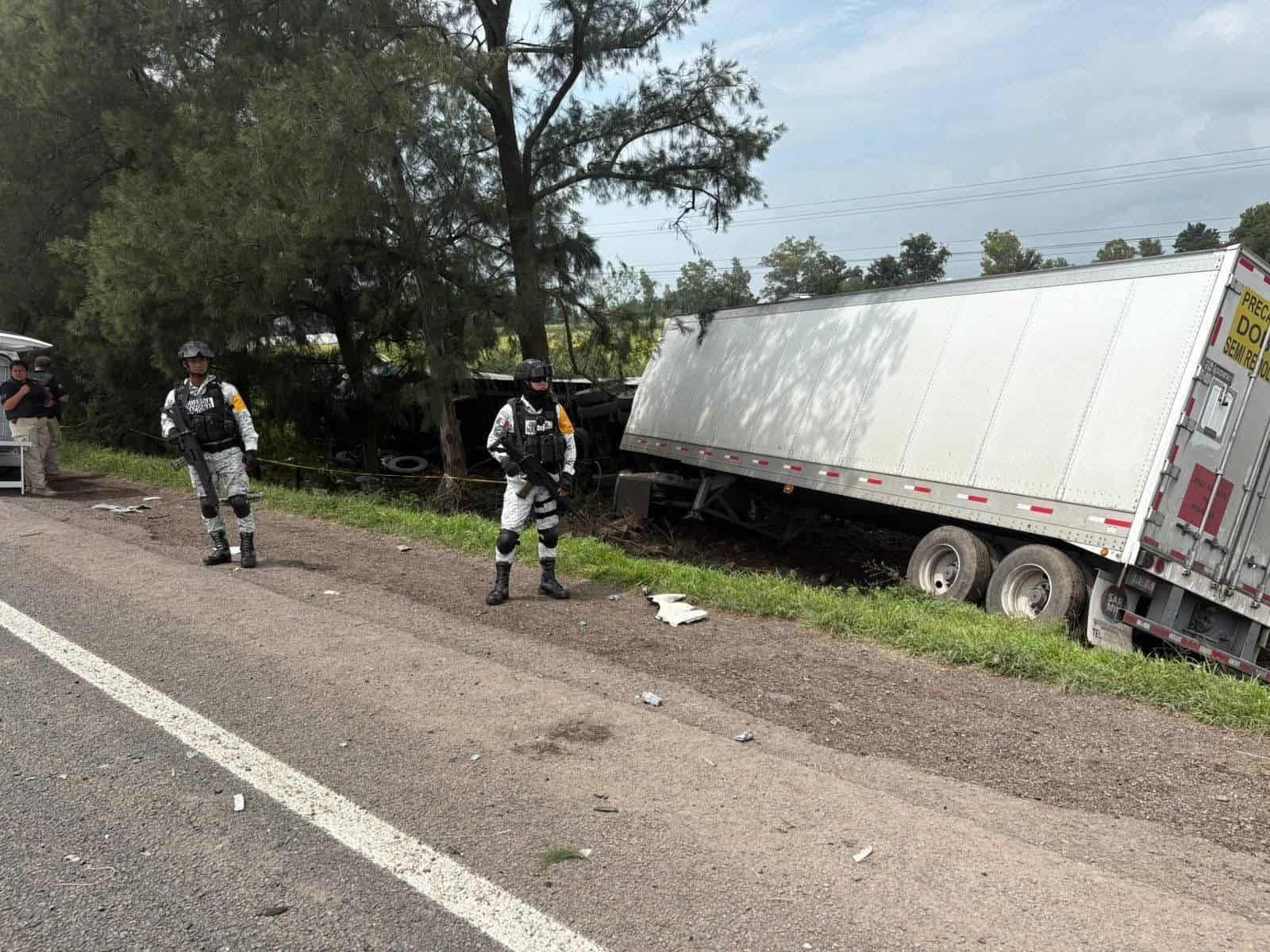 De acuerdo con los primeros reportes, el tráiler habría salido del camino e impactado de frente a la van en la que viajaban las víctimas, lo que provocó que esta terminara en la cuneta que divide los sentidos de la carretera.