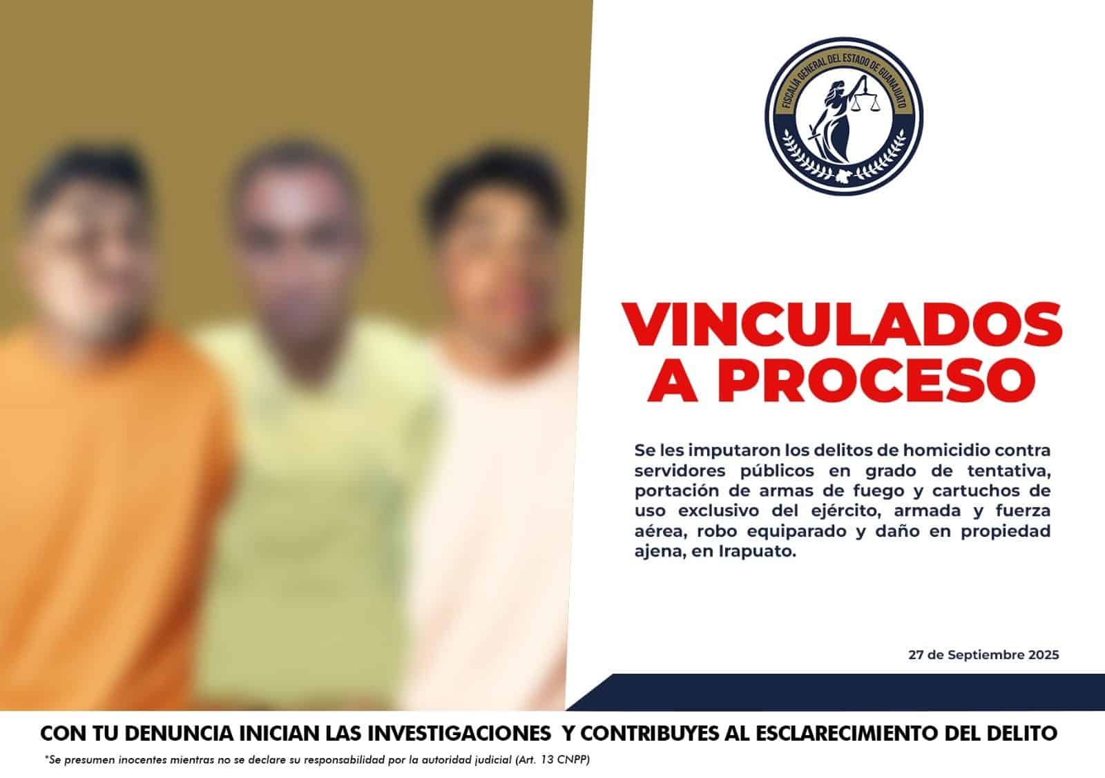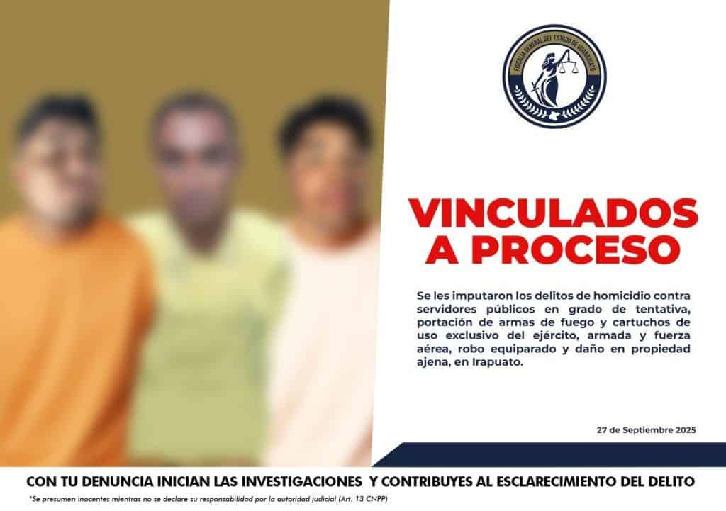 Tres hombres fueron vinculados a proceso penal, luego de enfrentarse a elementos de seguridad estatales y federales en el municipio de Irapuato, la madrugada del pasado 18 de septiembre.