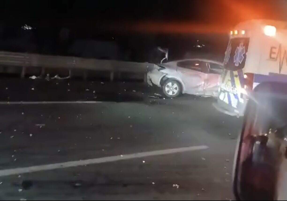 El accidente ocurrió alrededor de la 1:00 a.m., cuando dos autos tipo sedán y dos camionetas colisionaron, quedando destrozados y esparcidos sobre los tres carriles de este tramo carretero.