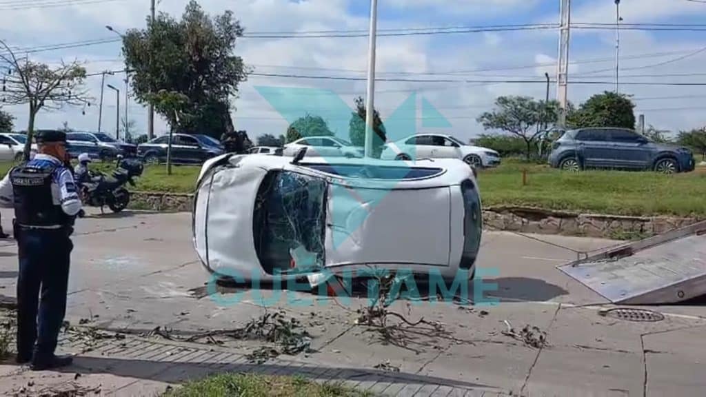 El percance ocurrió alrededor de las 10:00 de la mañana, cuando el conductor de un vehículo Mazda se incorporó a la lateral que conduce al fraccionamiento. En su trayectoria, impactó por alcance a una camioneta Audi, la cual salió proyectada hacia un Nissan March. Este último, tras el choque, perdió el control, se estrelló contra unos árboles y terminó volcado sobre la vía.
