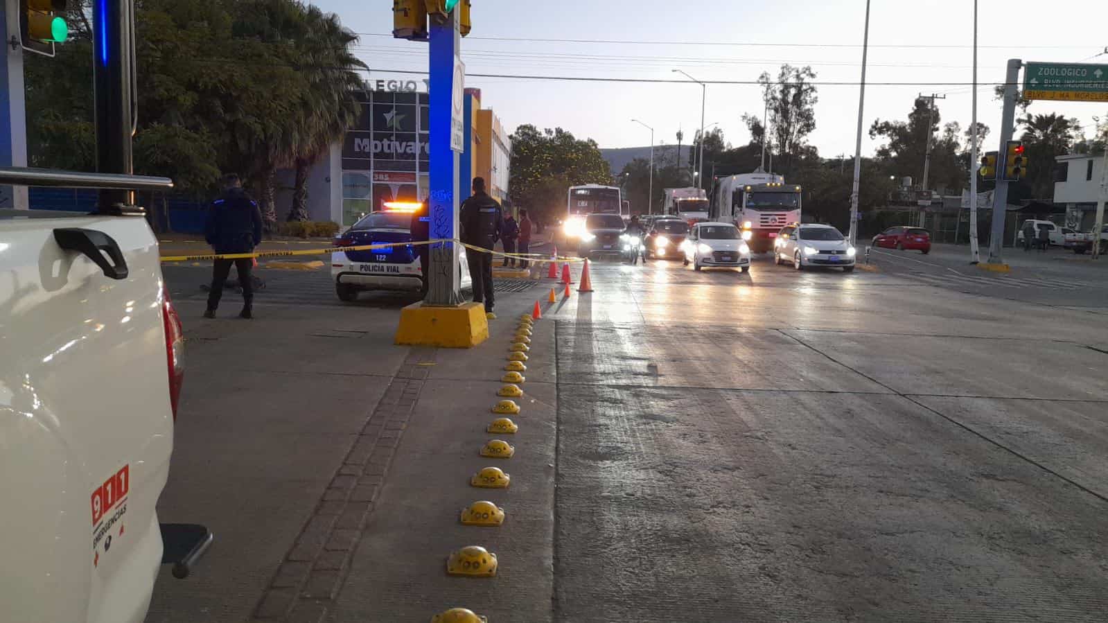 Ante la falta de indicios claros, elementos de Policía Vial procedieron a cerrar la parte baja de este cruce con el objetivo de resguardar el área y evitar la contaminación de la escena.