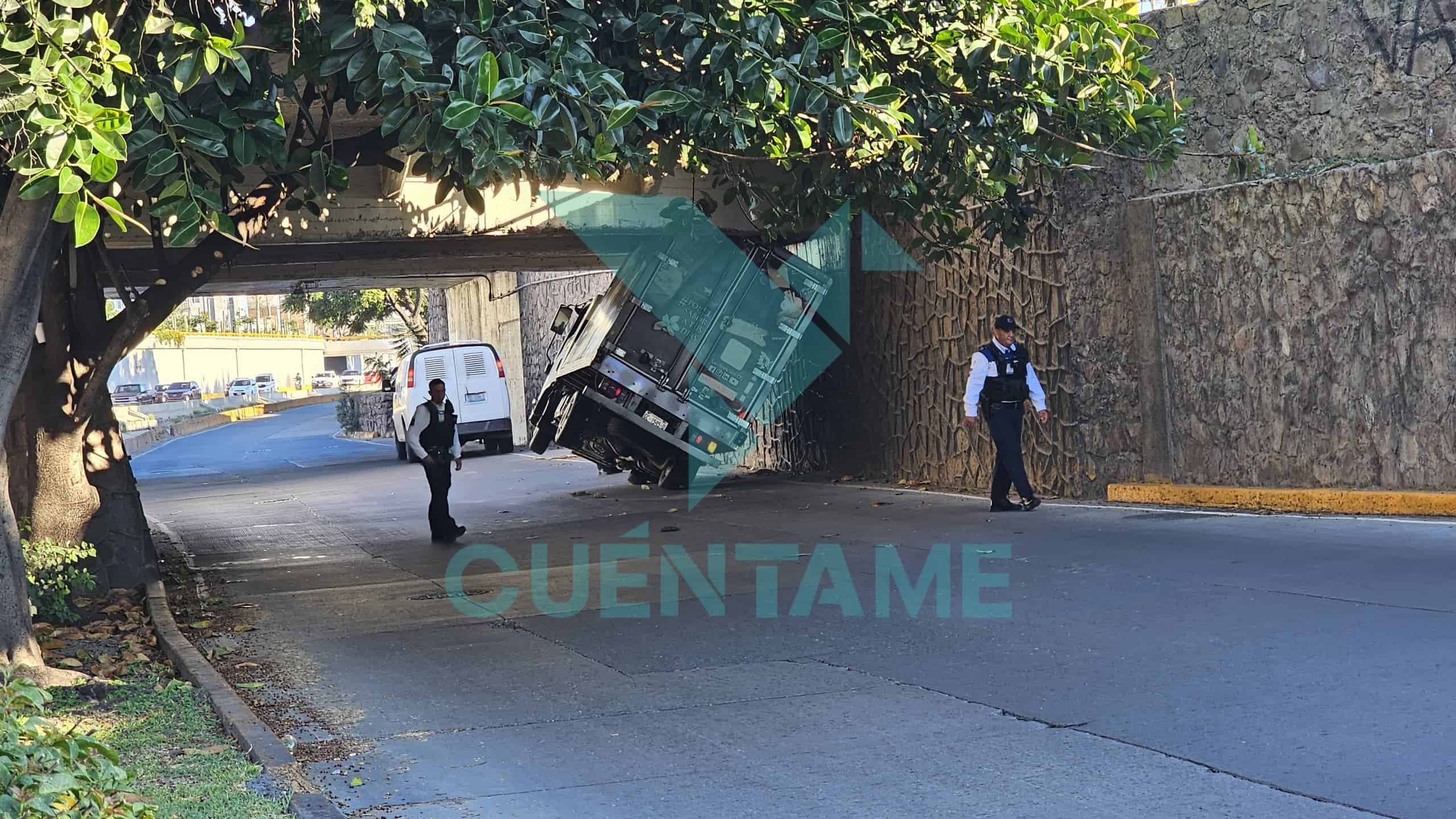 La mañana de este jueves se registró un percance vial en el cruce del Malecón del Río con el bulevar Hidalgo, luego de que una camioneta refrigerada quedara atorada bajo un puente a desnivel, ocasionando complicaciones en la circulación durante varias horas.