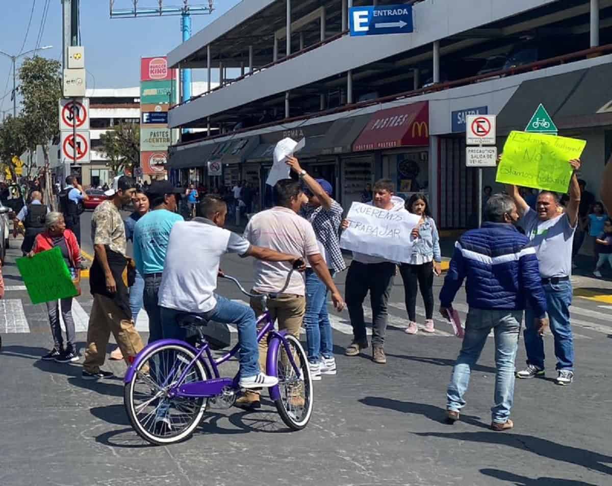 Los manifestantes portaban mantas y pancartas con diversas leyendas como: “Queremos trabajar”, “únanse”, “no somos delincuentes”; además de gritos de: “¡Arriba Morena, y “¡Fuera el PAN”.