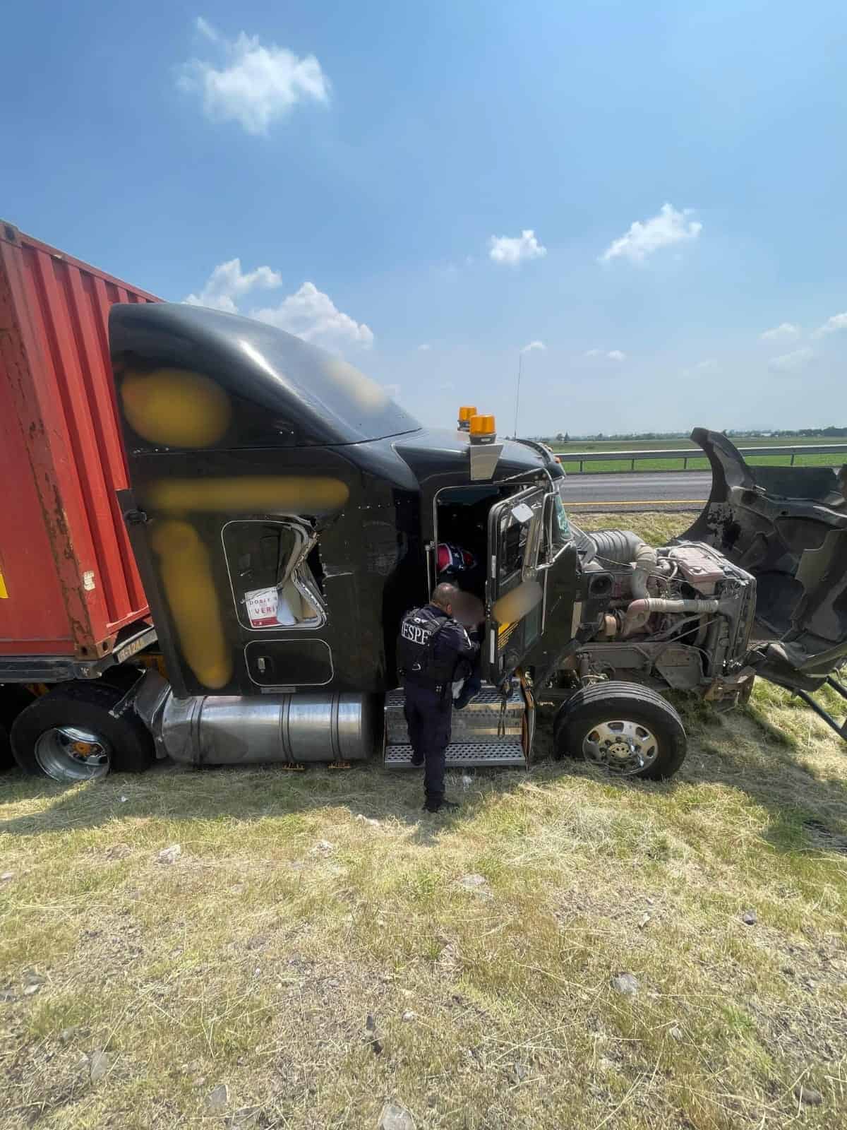 Elementos del Escuadrón Antiextorsión de la Secretaría de Seguridad y Paz del Estado de Guanajuato, auxiliaron a un conductor de tractocamión que sufrió un accidente en la carretera Salamanca–León.