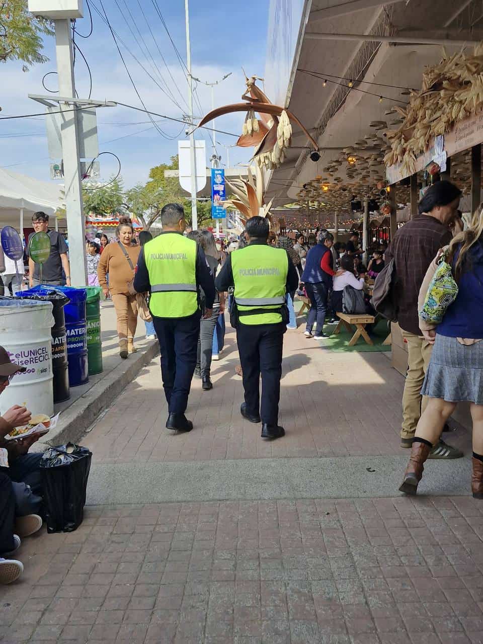Durante la feria mantuvieron vigilancia permanente en accesos y en la Velaria, donde se realizaron revisiones para evitar el ingreso de objetos prohibidos y proteger la integridad de los asistentes.