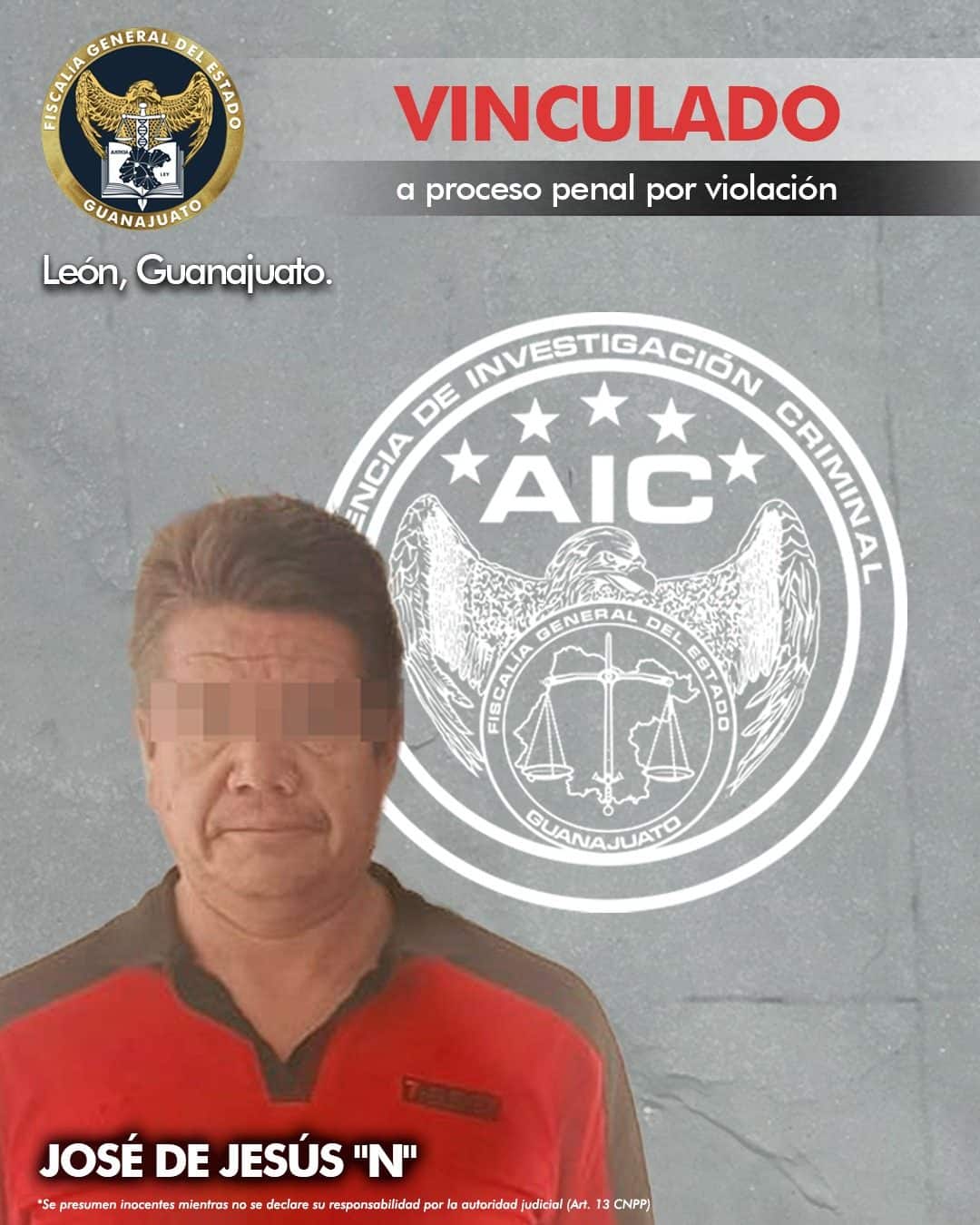 La Fiscalía de Guanajuato acreditó con pruebas la probable responsabilidad de José de Jesús “N”, un pastor cristiano por el delito de violación de una menor de 12 años.