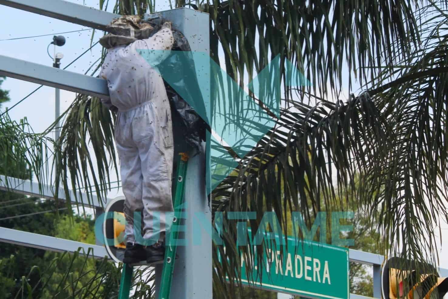 El ataque de los insectos generó momentos de pánico entre los presentes y obligó a las autoridades municipales a interrumpir la circulación vehicular por varios minutos, mientras brigadistas trabajaban para retirar el panal que se encontraba adherido a uno de los señalamientos del paradero.