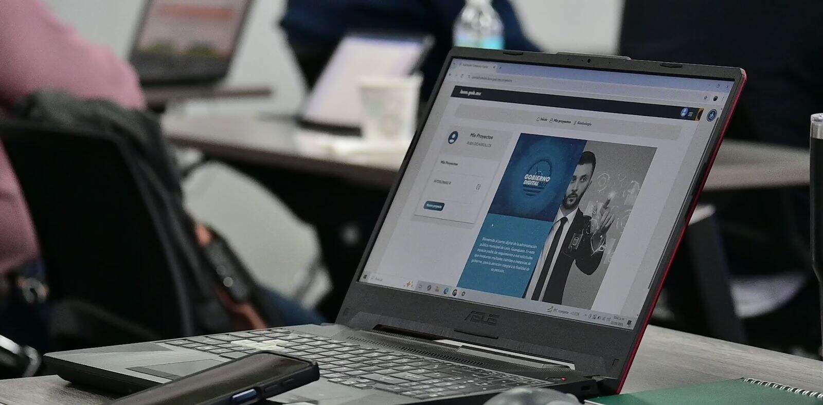 2. Persona en aula de clases usa laptop para acceder a página del gobierno digital.