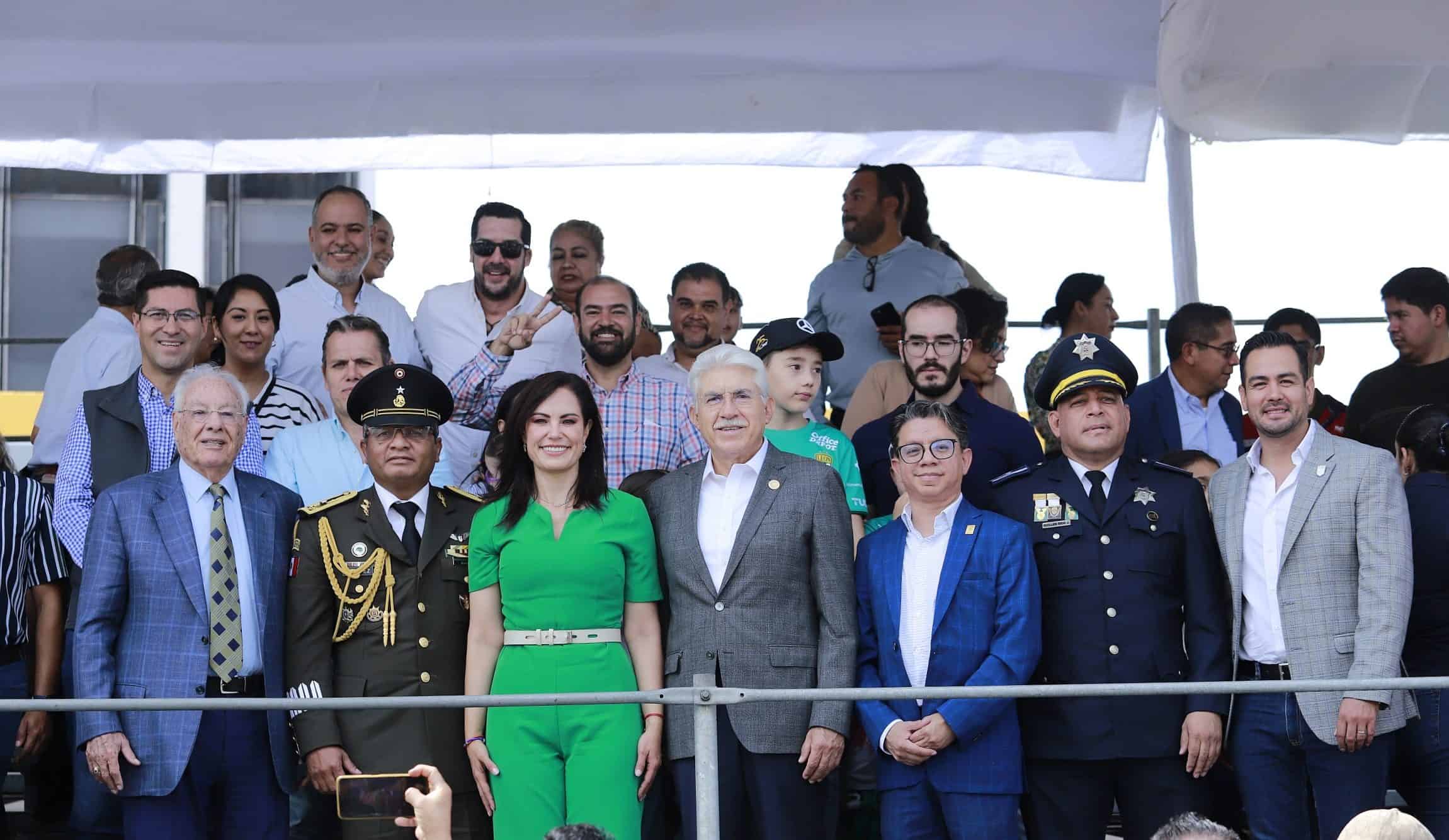 La presidenta municipal de León, Alejandra Gutiérrez Campos, en compañía del diputado local, Luis Ernesto Ayala; el general de brigada, Paulo Francisco Benítez Gómez, en representación de la 16va zona militar y miembros del gabinete, presenciaron este evento en el que desfilaron 2 mil 168 personas, 60 caballos y 14 canes.