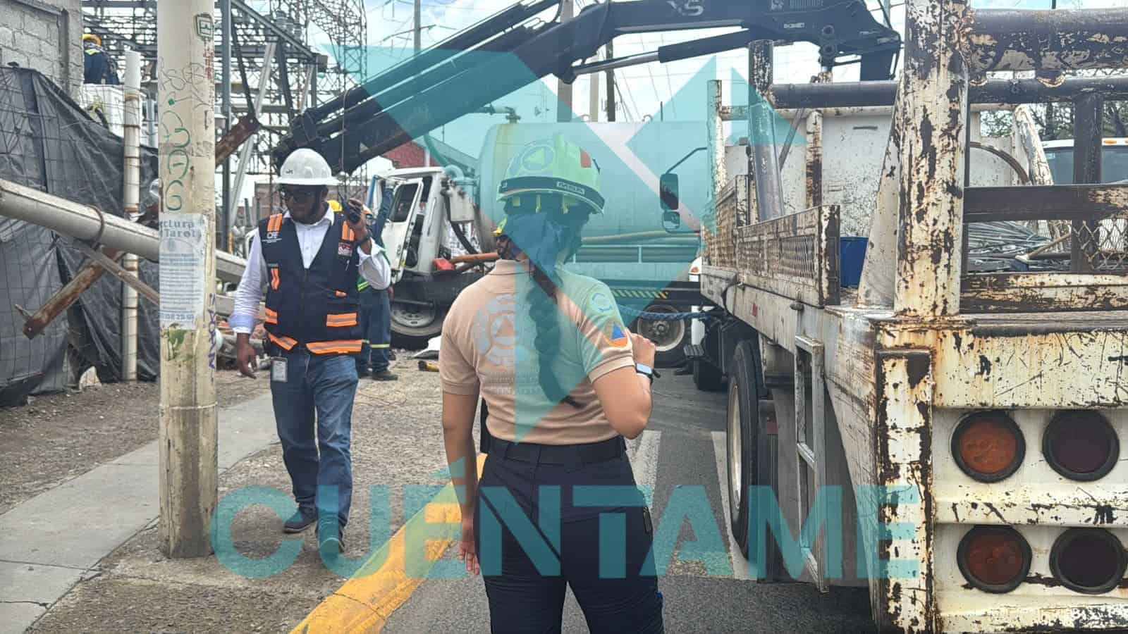 Dada la magnitud del golpe, personal de la Comisión Federal de Electricidad también acudió al sitio para valorar los daños y comenzar con las labores de reparación en la infraestructura afectada.