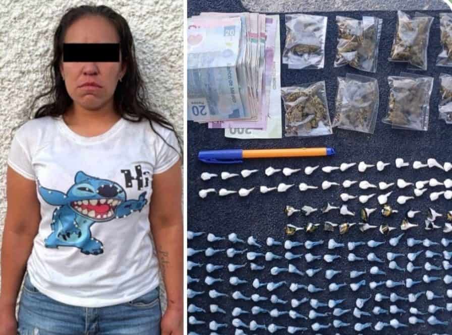 Como parte del operativo que se mantiene en la avenida Miguel Alemán y alrededores, policías detuvieron a una mujer, presunta distribuidora de droga, con más de 180 dosis de diversas sustancias.
