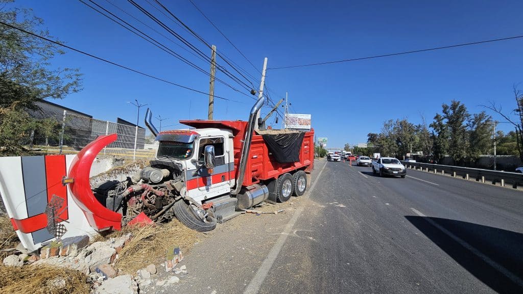 Tolva embiste tres vehículos en la carretera León-Silao al intentar esquivar a comerciantes cerca de Comanjilla