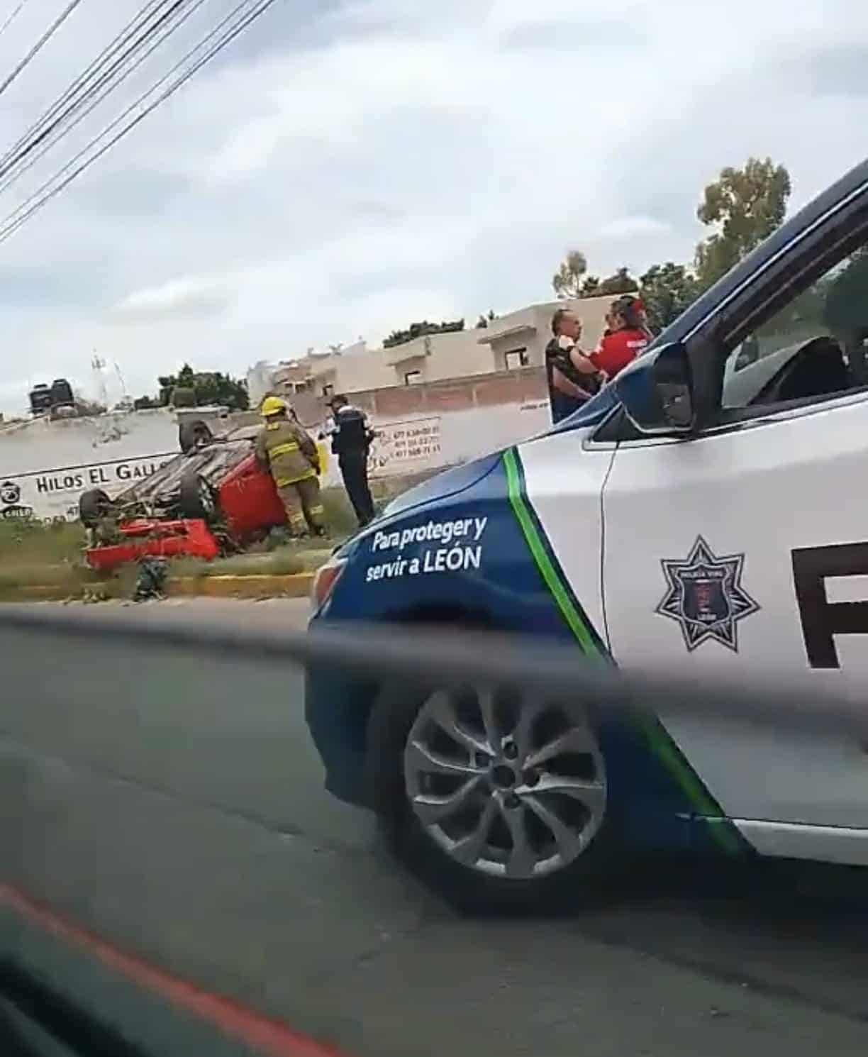 Un aparatoso accidente ocurrido la tarde de este lunes movilizó a los cuerpos de emergencia de León, luego de que un vehículo terminara volcado entre el bulevar Miguel de Cervantes Saavedra y Mariano Escobedo.