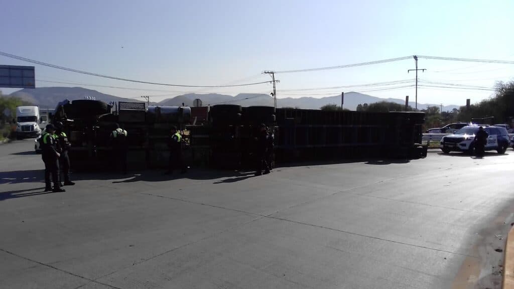 De acuerdo con los afectados, la maniobra fue inevitable ante el cierre de paso por parte de la tolva, lo que derivó en la volcadura.