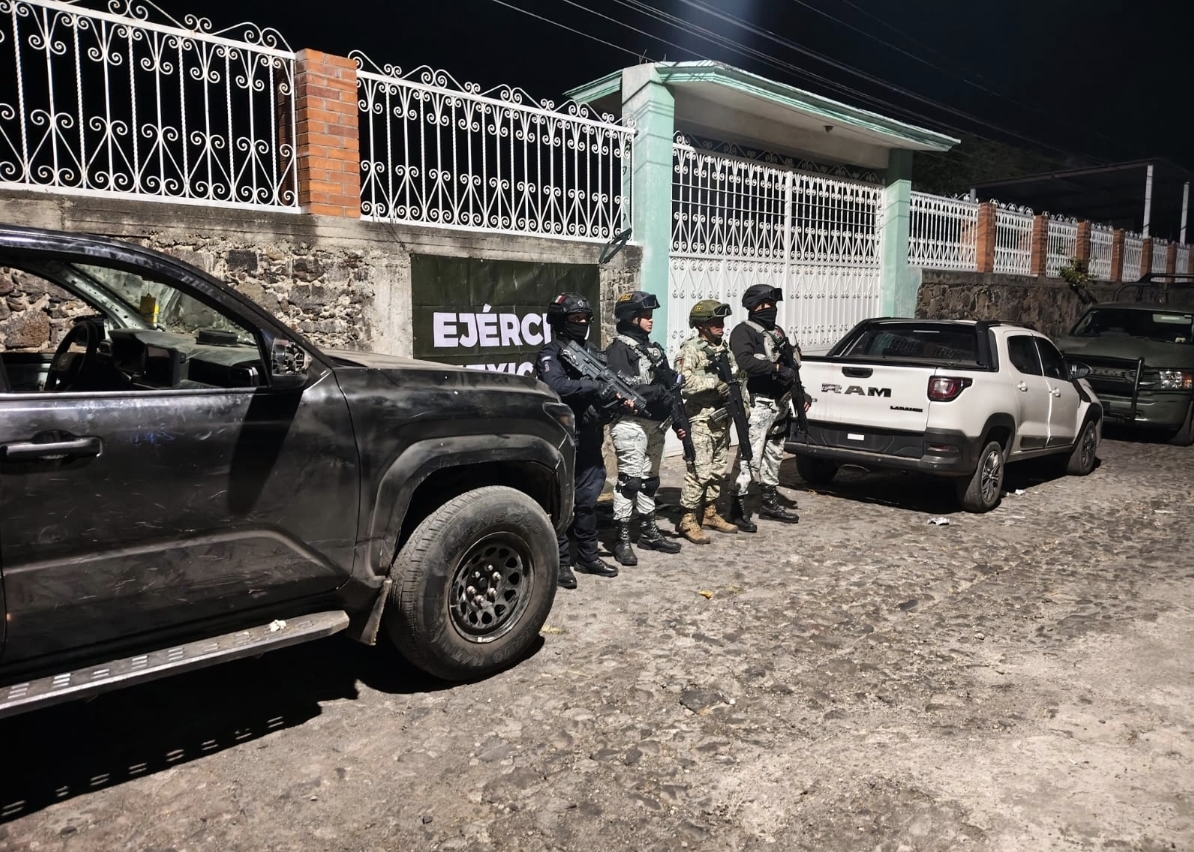 Tras la inspección, se confirmó que ambas camionetas contaban con reporte de robo vigente. Además, se aseguró un arma larga, 194 cartuchos útiles, seis cargadores, tres chamarras tácticas con patrón pixelado, un casco balístico, un chaleco balístico y una funda para arma corta.