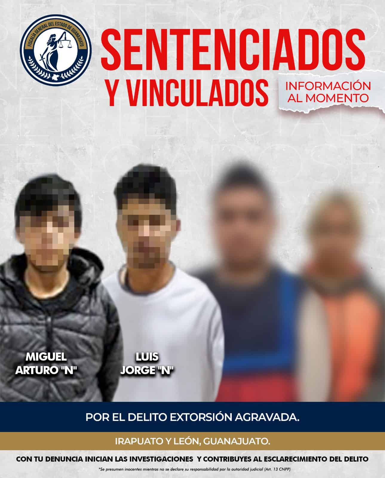 En Irapuato, dos hombres identificados como Miguel Arturo “N” y Luis Jorge “N” fueron sentenciados por extorsión agravada tras aceptar su responsabilidad ante un juez.