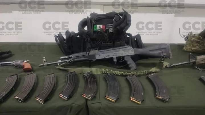 Todos ellos fueron sorprendidos con un arsenal compuesto por un AR-15, dos AK-47 (conocidas como cuernos de chivo), un revólver calibre .22, 19 cargadores, 570 cartuchos útiles de diferentes calibres, y tres chalecos balísticos, uno de ellos con la leyenda de un supuesto grupo criminal.