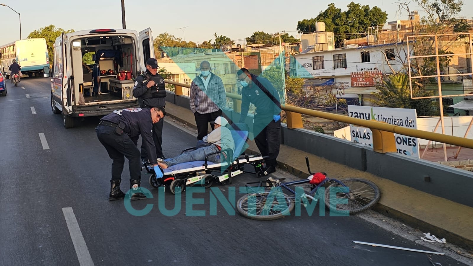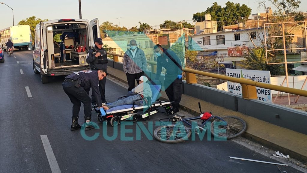 Tras el impacto, el hombre cayó de la bicicleta y quedó tendido sobre el carril derecho del puente, que cruza el bulevar Miguel Alemán, generando afectaciones a la circulación. El tráfico se extendió hasta la calle Pino Suárez mientras se realizaban las maniobras de atención.