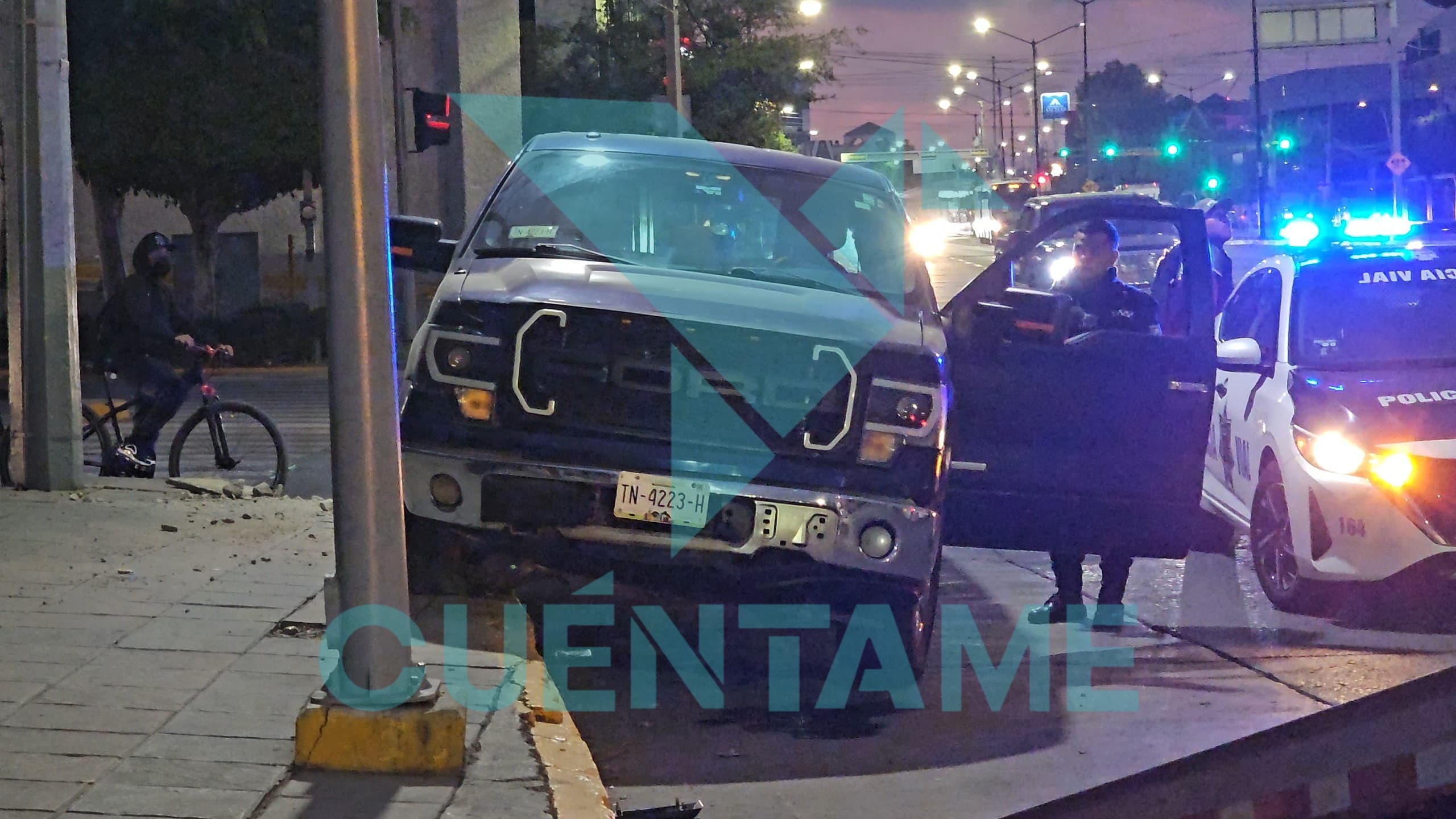 De acuerdo con el propio conductor, otro vehículo presuntamente se pasó el semáforo en rojo, por lo que realizó una maniobra repentina para esquivarlo; sin embargo, perdió el control de la unidad y se impactó contra la acera.