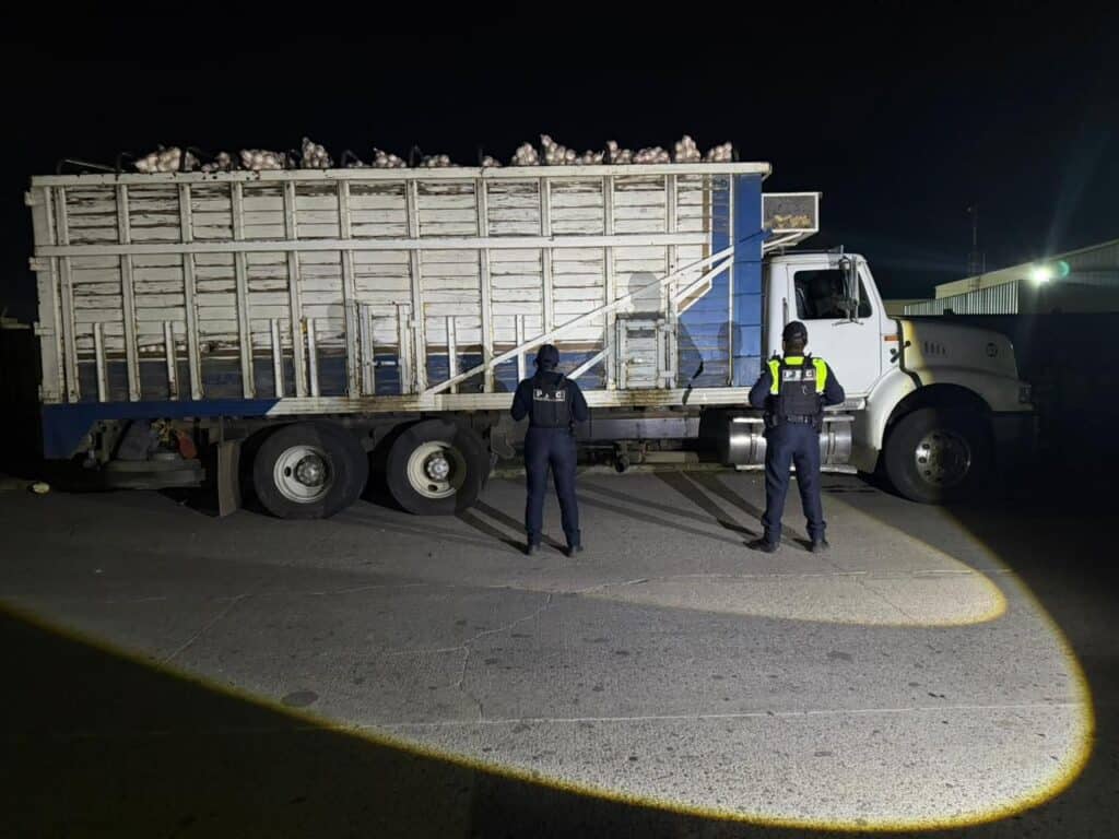 Un operativo de vigilancia terminó con la recuperación de un vehículo robado que transportaba cerca de 20 toneladas de cebolla, con un valor estimado de 500 mil pesos, en una acción que busca frenar afectaciones a la economía local.