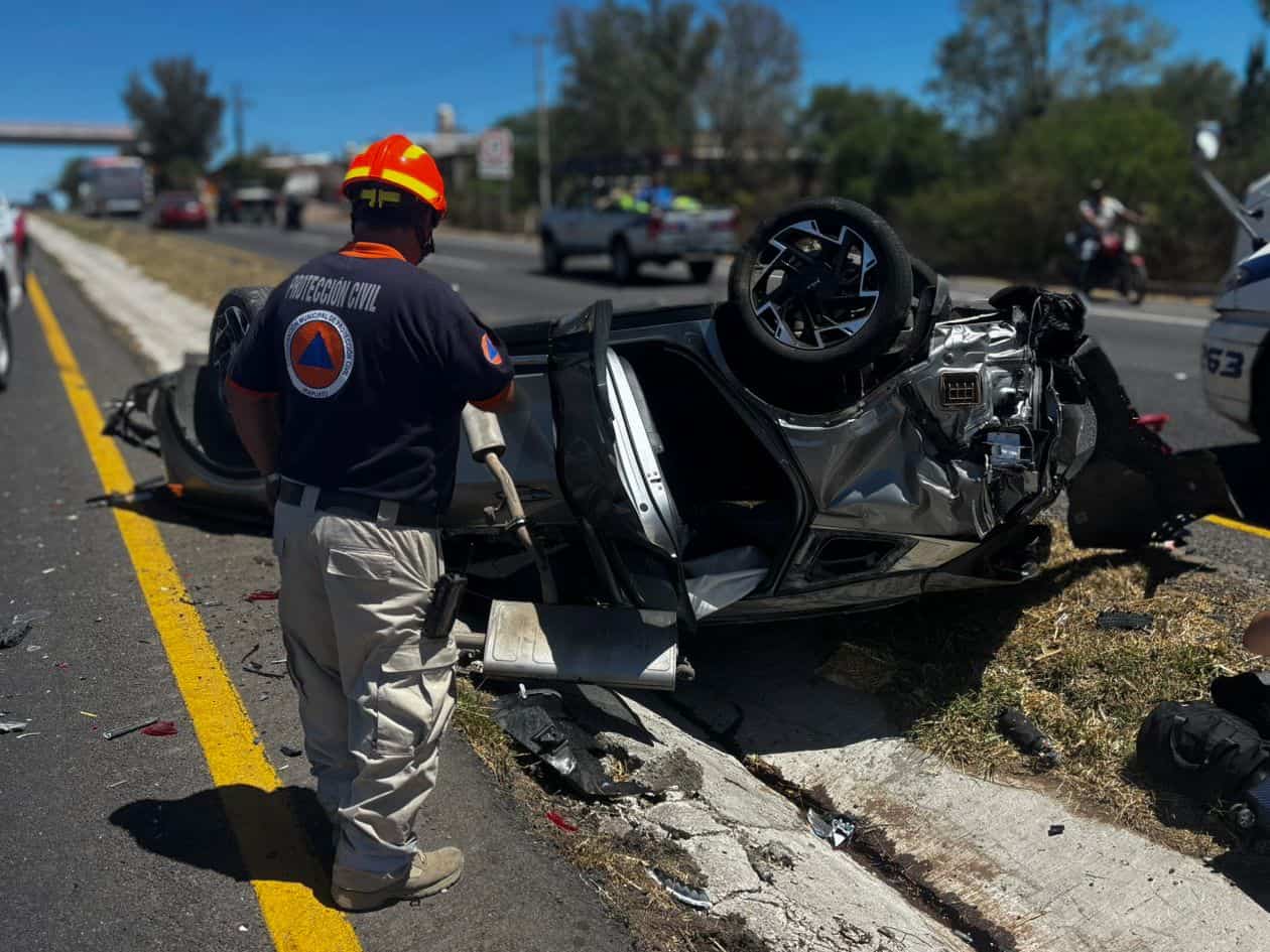 Se salvan de milagro: cuatro personas salen ilesas tras aparatosa volcadura en la carretera Irapuato–Abasolo