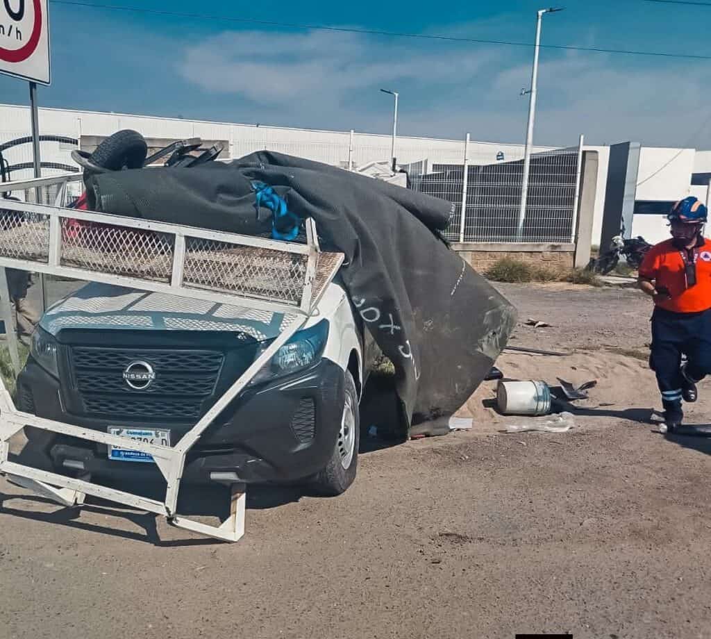 Aparatoso choque paraliza la carretera Irapuato–La Piedad; ladrillos quedaron esparcidos sobre la vía