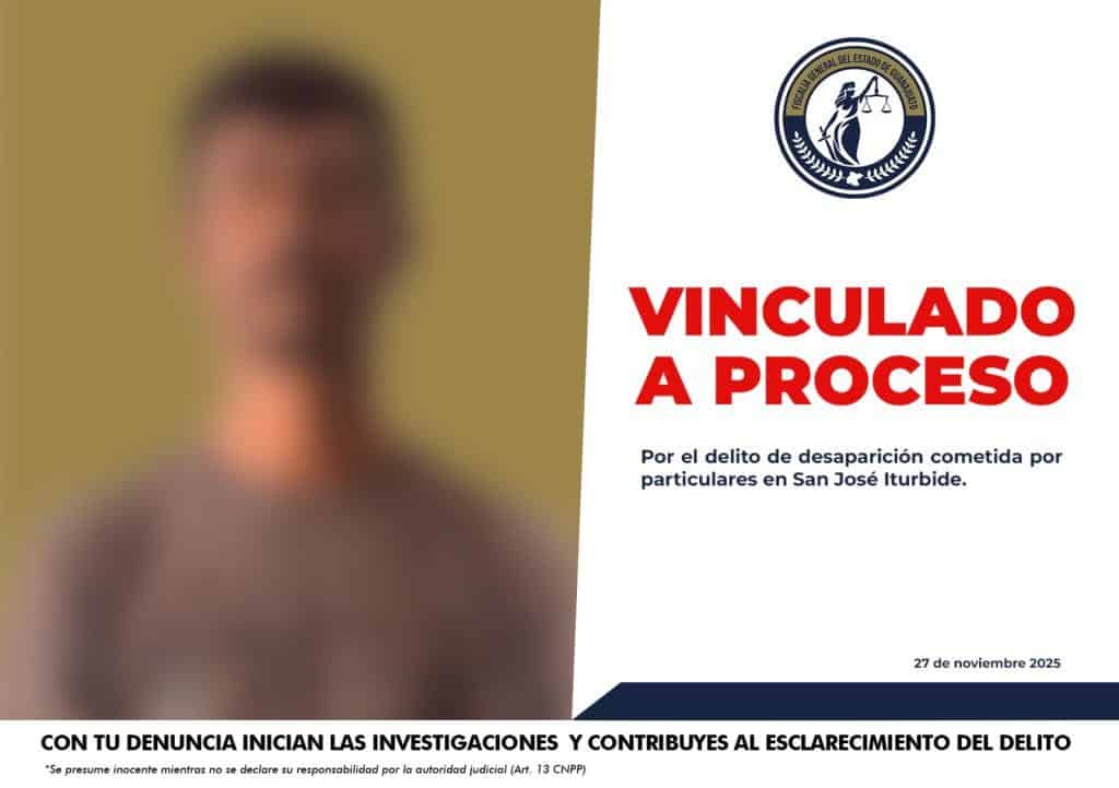 Abraham “N”, conocido como “El Cocono”, fue vinculado a proceso por su presunta responsabilidad en el delito de desaparición de personas, tras hechos ocurridos en la comunidad La Estancia del Capulín.