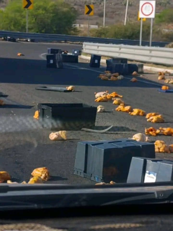 Una aparatosa volcadura registrada la mañana de este viernes en la carretera Silao–Irapuato, a la altura del complejo educativo ITESI, dejó una escena poco común: decenas de pollos esparcidos sobre el asfalto, lo que provocó largas filas de vehículos y complicaciones para circular por la zona.