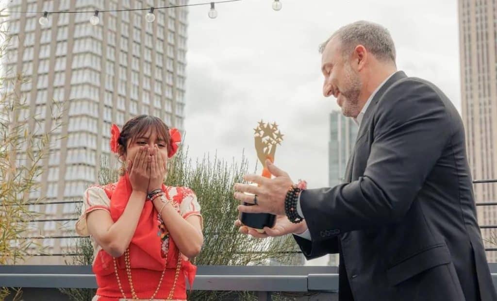 Ángela fue elegida entre más de 11 mil postulaciones de 176 países y recibió el galardón en Nueva York durante la semana de la Asamblea General de las Naciones Unidas.