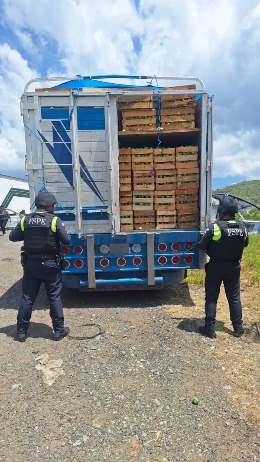 La Policía Estatal de Caminos (PEC) recuperó un vehículo de carga tipo Torton con reporte de robo que transportaba 12 toneladas de tomates en el municipio de Silao.