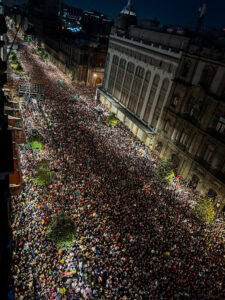 En un ambiente de celebración y con saldo blanco, el público cantó temas emblemáticos de la banda argentina, como “Siguiendo la luna”, “Mal bicho”, “Vasos vacíos” y “Calaveras y diablitos